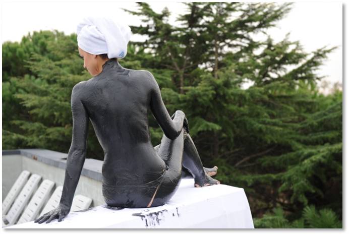 Questa applicazione all’aperto è unica in Italia: con questa tecnica ci si può muovere liberamente al sole, e l’irradiazione solare è trattenuta e filtrata dal sottile strato lucente e nero del limo.